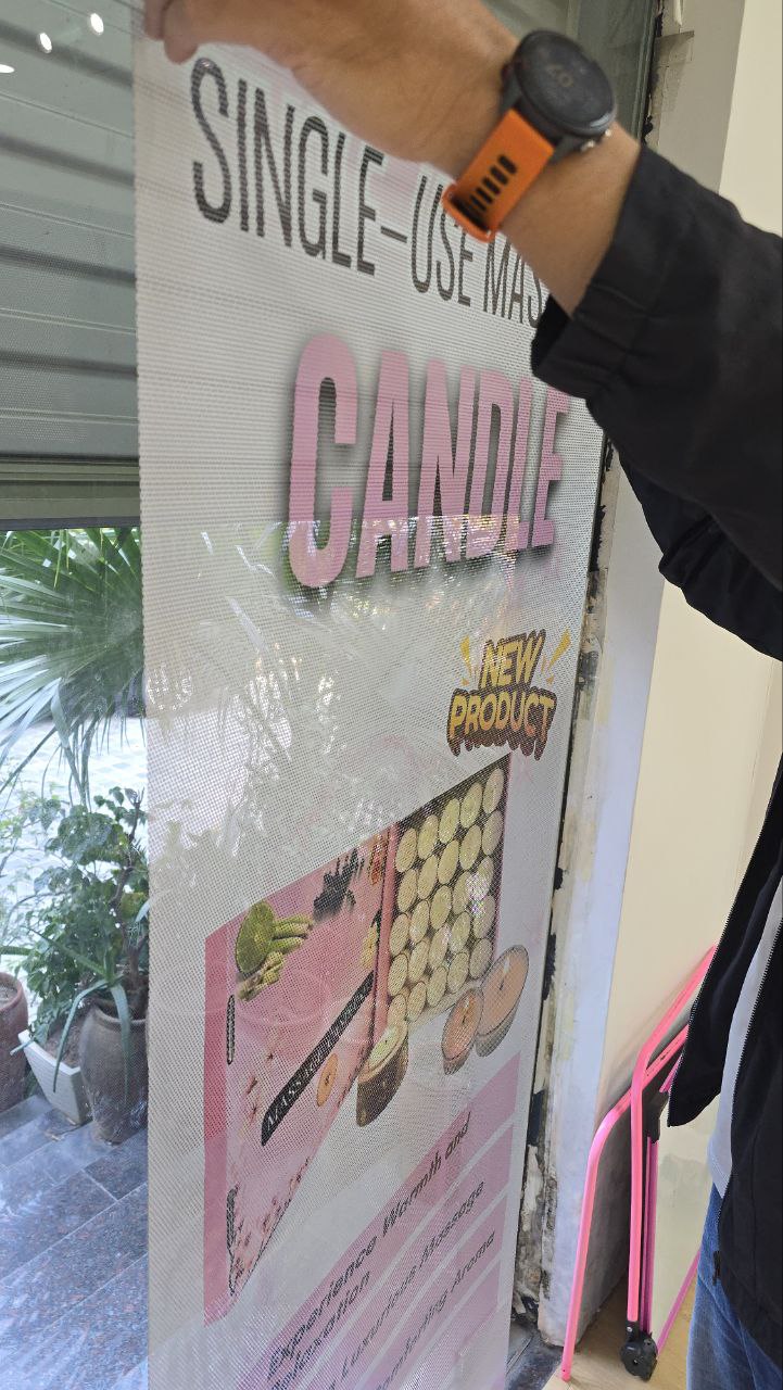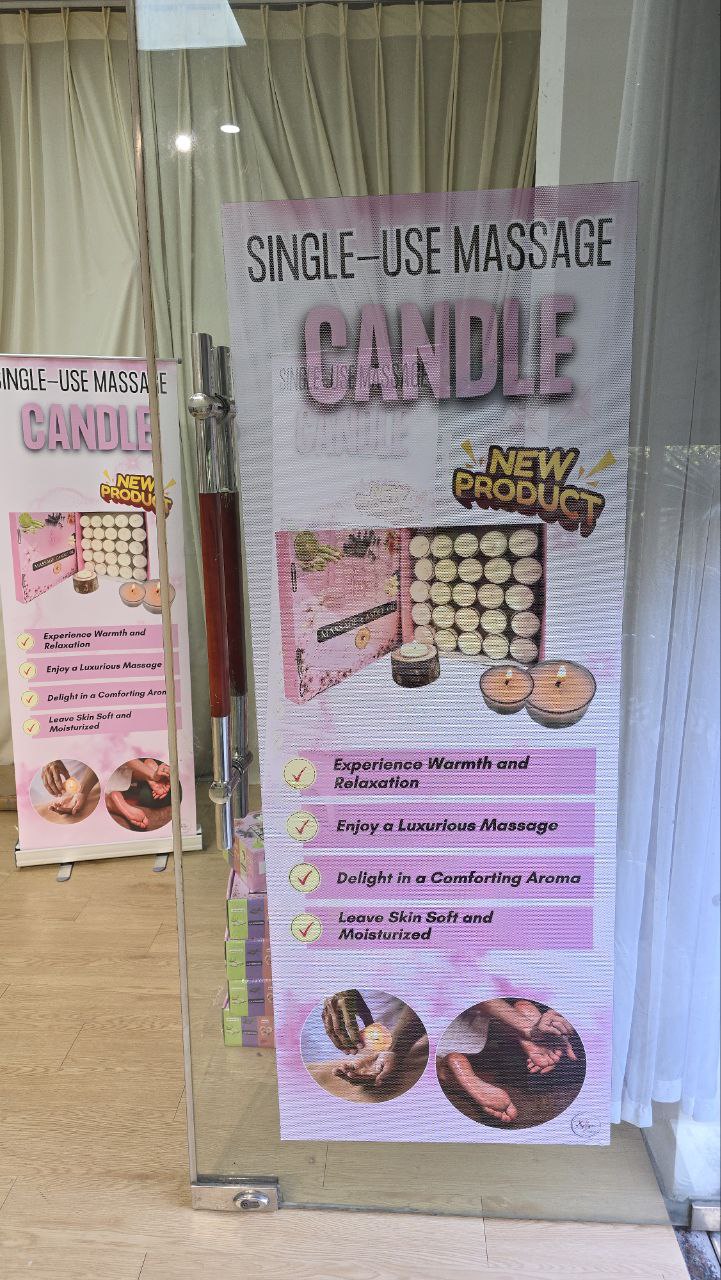 Khi mua nến massage, tiệm được TẶNG decal lưới xuyên thấu thiết kế riêng – không đại trà, chỉ dành riêng cho tiệm của mình.